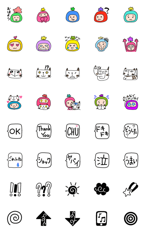忍ばない忍者、不忍くんの絵文字です。相棒のネコも一緒。喑い背景でもそれなりに見やすいです。