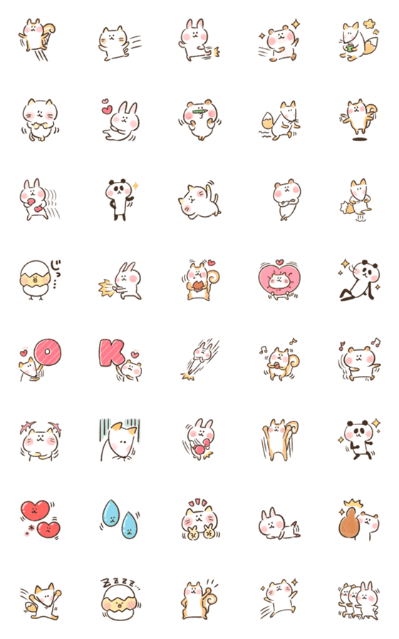会話の中を元気に動き回る動物たちの絵文字です