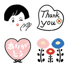 ミニスタンプとしても使えるモダンガールの絵文字です☆彡**モダンカラーのお花やハート、コスメモチーフも♪