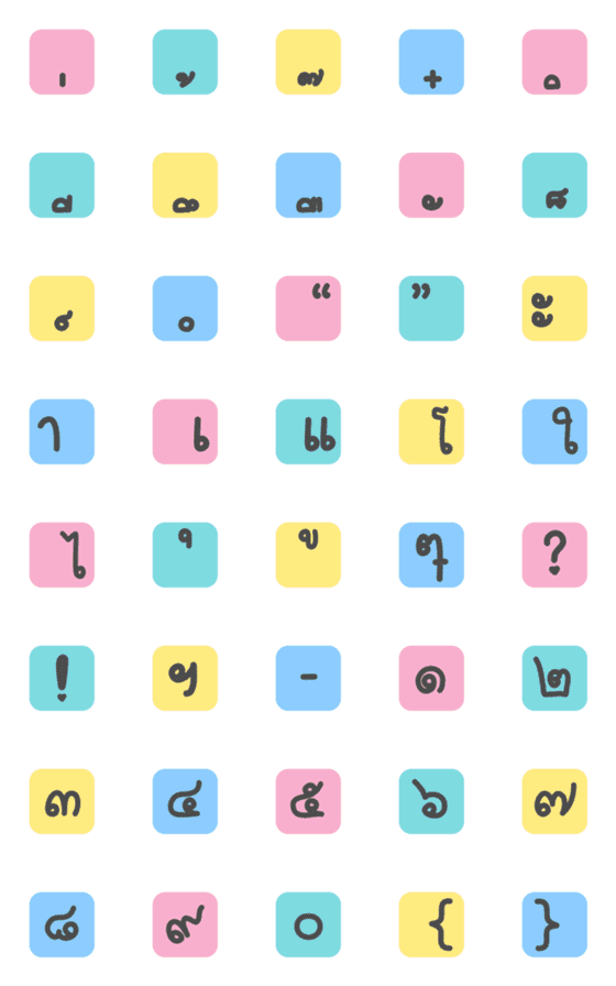 Thai Vowel Alphabet in Square. Cute color and simple.