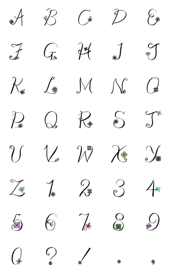 幾何学模様の飾りをあしらったアルファベット大文字と数字の絵文字です。