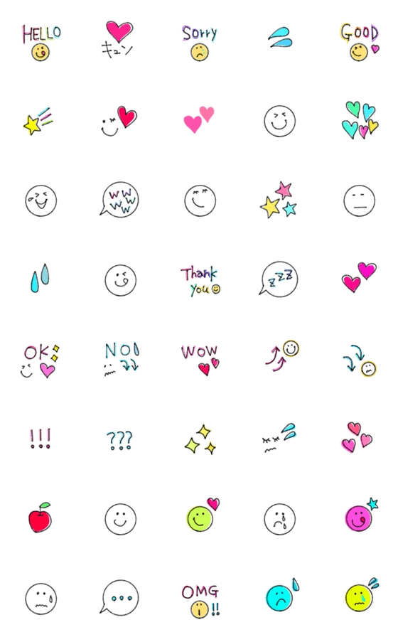 毎日/日常/使える/活躍/カラフル/ハッピー/蛍光/キラキラ/にこちゃん/バラエティパック/セット/ハート/星/一言/挨拶/人気/話題/急上昇