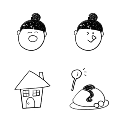 手書きでかわいいモノクロの女の子絵文字です!モノクロ/女の子/手書き/お団子