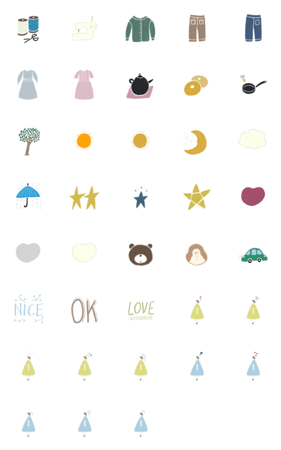 日常会話で使えそうなものから 少しですがミシンや服、糸など ソーイングを楽しむひとにも使えそうな絵文字をつくりました