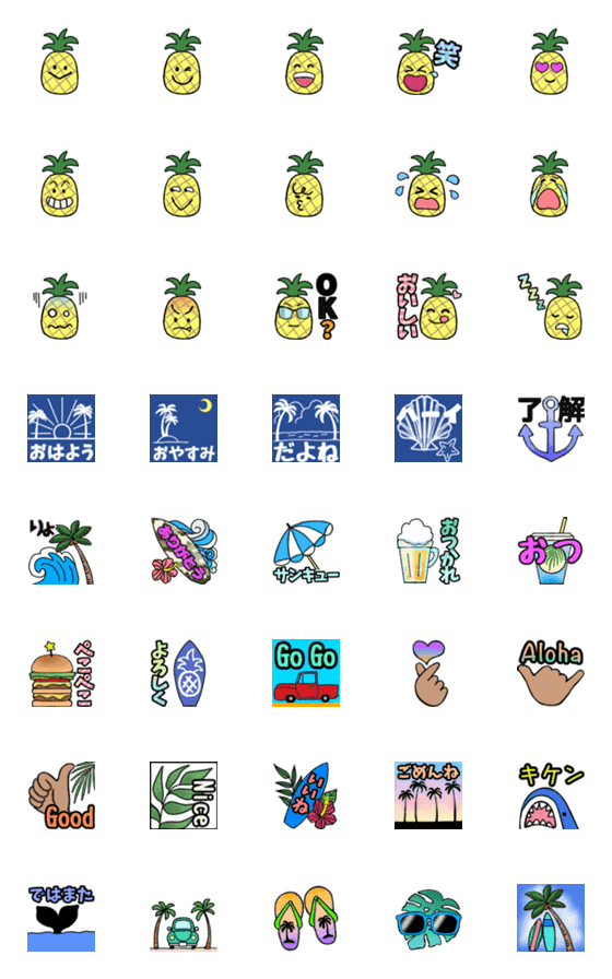 パイナップル、ヤシの木、サーフボードなどハワイっぽいアイテムがいっぱい!
