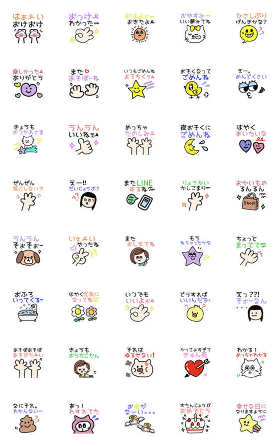 かわいい手書き文字のミニスタンプ。ゆるい/文字入り/大人/女子/シンプル/友達/家族/使える/毎日/ポップ/カラフル