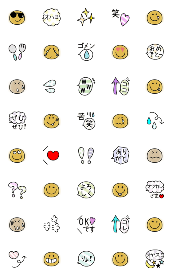 毎日使えるシンプルな絵文字とキュートなスマイルがハッピーをお届け!!