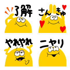 黄色い顔とよく使う一言の絵文字です。スタンプとしても使えます。日常会話/使いやすい/挨拶/喜怒哀楽/可愛い