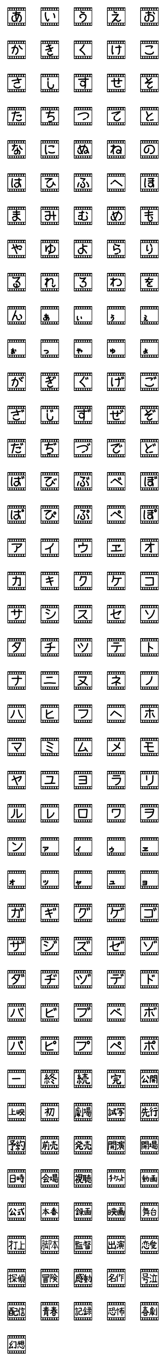 つないで使えるフィルム文字。ひらがな、カタカナ、絵文字。映画や演劇などに。フィルムがつながるとシネマ風に。ちょっとレトロな雰囲気。公開、劇場、上映、試写など。