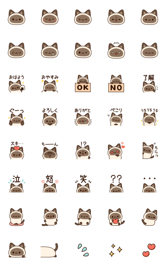 友達や家族、恋人など、誰にでも使える可愛いシャム猫のえもじです♪