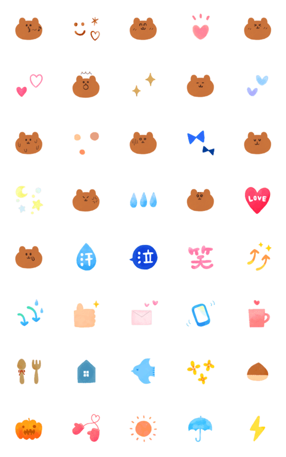 クマ/熊/動物/どうぶつ/水彩/絵具/えのぐ/絵の具/ほのぼの/日常/生活/毎日/感情/気持ち/かわいい/可愛い/使いやすい/ハート/星/マーク/絵文字/天気/家/表情/のんびり/癒し