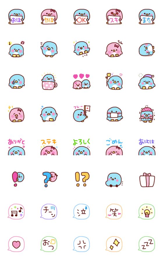 ころりんと転がるペンギンのかわいい動く絵文字♡吹き出し絵文字付き!アニメーション/記号/挨拶/日常/ぺんぎん/パステル/ママ友達/カップル/恋人/うごく/手書き/ゆるかわ