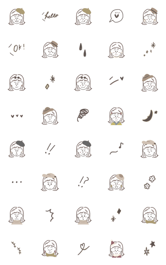 年中使える色んな表情絵文字⁎大人女子/お出掛けコーデ/ママ/春夏秋冬/浴衣/サンタ/手描き絵文字/可愛い/線画