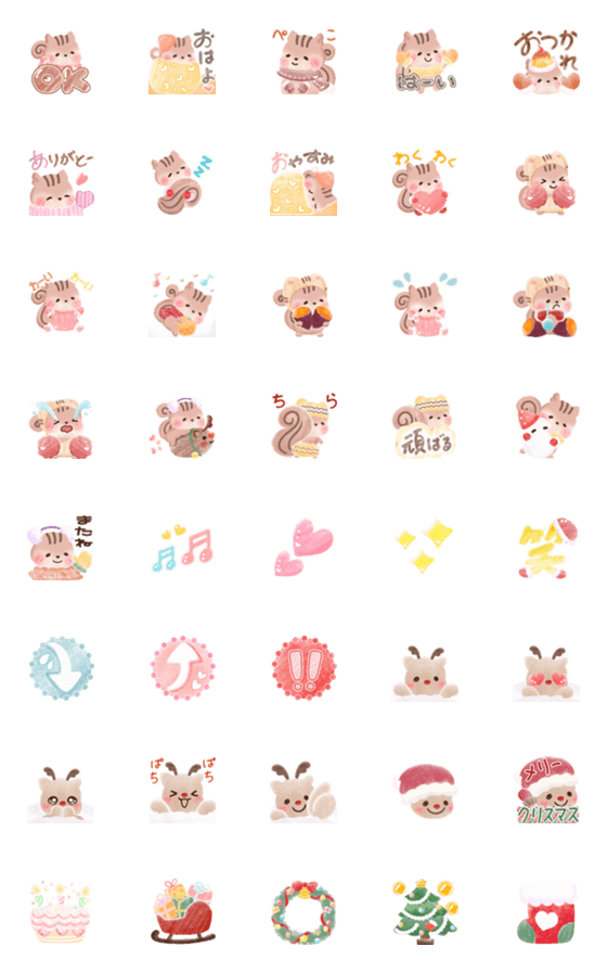 冬に使えるシンプルなアニメーション絵文字です/トナカイ/リス/クリスマス/雪だるま