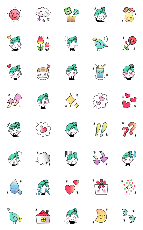 水色ガールが絵文字に登場しました。毎日みんながハッピーに!そして優しい気持ちになれる絵文字です。ミニスタンプとしても使えます。