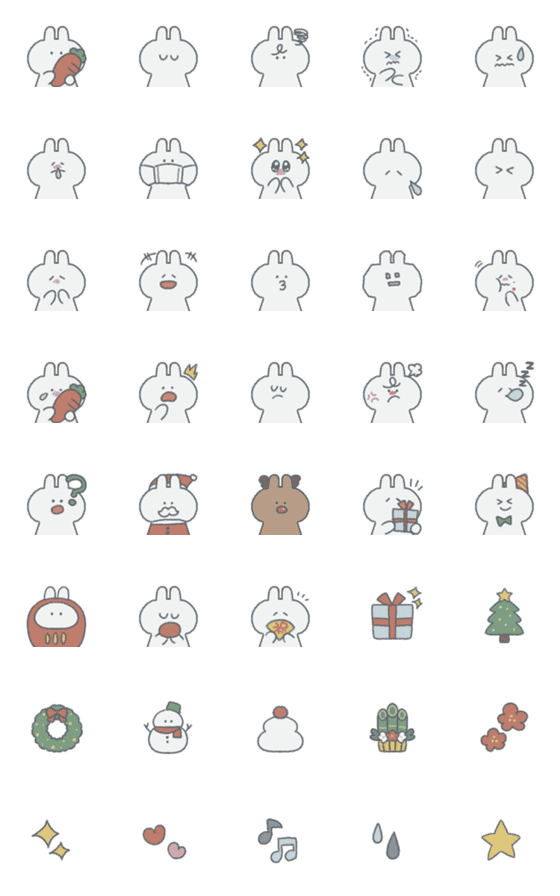 うさぎときどきにんじんシリーズの絵文字です。寒い時やクリスマス、お正月などに使えるほんわり冬カラー