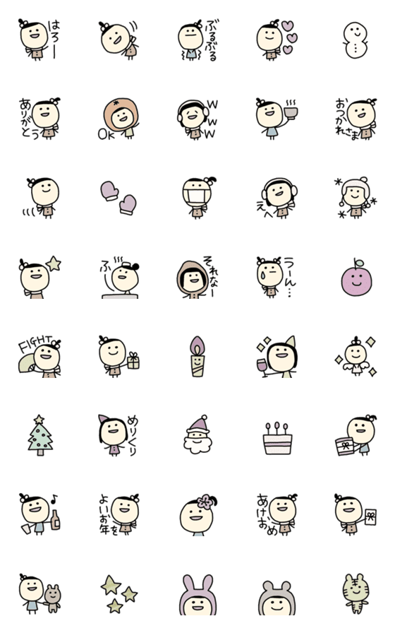 ほんわかしたカラーのシンプルな女の子の絵文字です。冬にぴったり♡ミニスタンプとしても♡