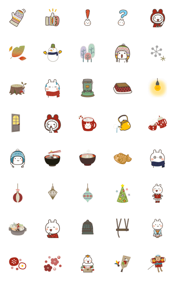 冬に使えるうさぎの大人可愛い絵文字です。クリスマスや年末年始にも♪
