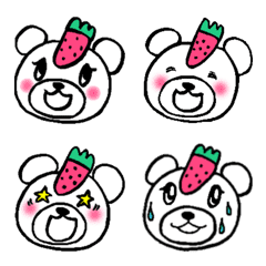 いちごクマです。頭に乗せた大きないちごがチャームポイント。日常の会話で使える絵文字の詰め合わせです。