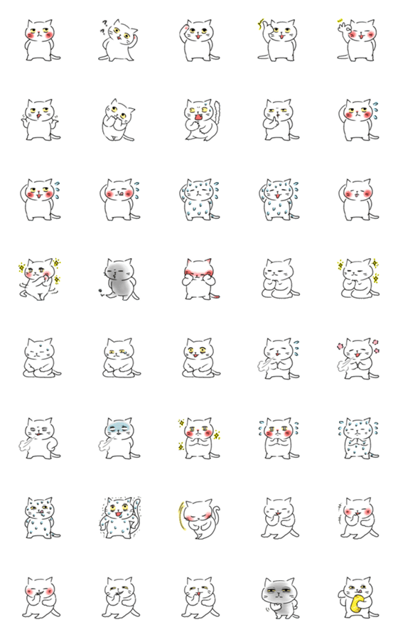 ちょっとふてぶてしい白猫がいろんな気持ちを体現。日常でよく使う、微妙なニュアンスの白猫。文末に添付して可愛がってあげてください。