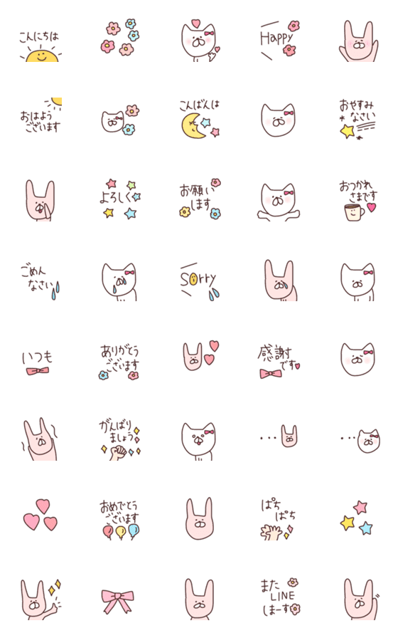 毎日/使える/あいさつ/敬語/よく使う/一言/メッセージ/ねこ/ネコ/白猫/うさぎ/ウサギ/かわいい/シュール/cute/人気/おすすめ/吹き出し/花/ハート/星