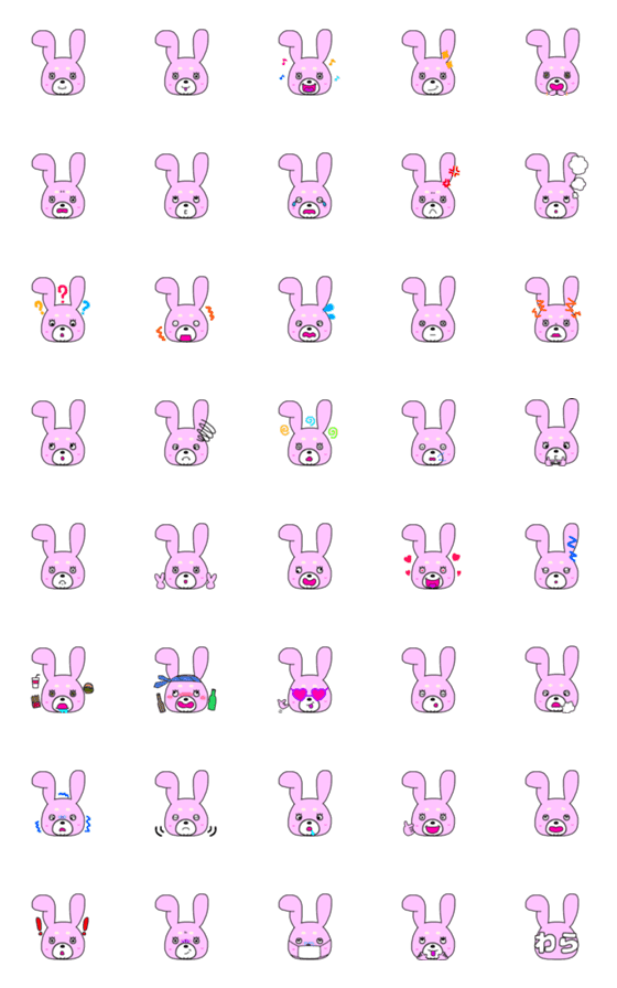 ピンクのくりくりな目が可愛いうさぎさんの絵文字です!