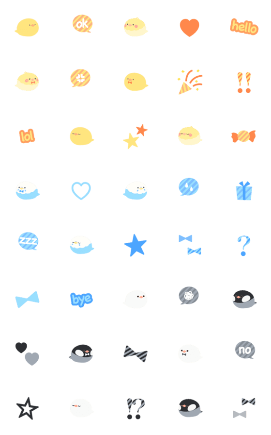 小鳥/ひよこ/オカメインコ/セキセイインコ/文鳥/ハート/リボン/シンプル/カラフル/手書き/手描き風/落書き/可愛い/かわいい/ゆるい/ゆるかわ/写真に貼れる