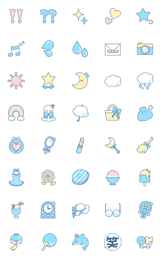 女の子なら一度は憧れる、魔法少女アイテムをぎゅっと詰め込んだパステルカラーでふんわりゆめかわいい絵文字の爽やか夏ver.です**.。°…魔女っ子*魔法使い*きらきら