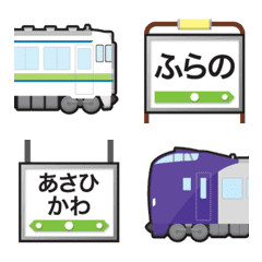 北海道/富良野を走る「白とパープルの電車と駅名標」絵文字です☆ 2種の電車に2路線の駅名標を収録! 現在地の報告や連絡用としてお役立てください☆ 旅行がお好きな方にも!