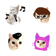 カラフルなウィッグ(かつら)やメガネ・どことなくビジュアル系・シンガー・動物のかぶり物や節分の鬼まで、いろんな格好のファンキーな実写の白猫ちゃん絵文字だにゃ♪