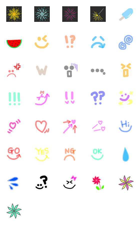 花火などの夏らしい絵文字と日常で使えるsmile絵文字です♪