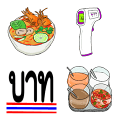 タイ料理とコロナ対策のいろいろ絵文字。/バーツ/