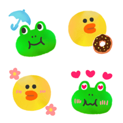 LINE FRIENDSのケロケロ緑の蛙のレナードと可愛い黄色のひよこちゃんサリー♥水彩マーブルカラーの日常づかいしやすい喜怒哀楽絵文字♪梅雨の傘やドーナッツやコーヒー等♪※BROWN & FRIENDS をみんなでつくろう!キャンペーン参加絵文字です