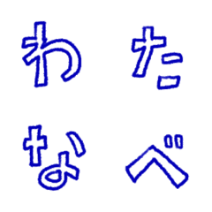 青いかなとカタカナのふち書きの絵文字です。手書き風でやわらかな気持ちになります。青いの好きな方へ。