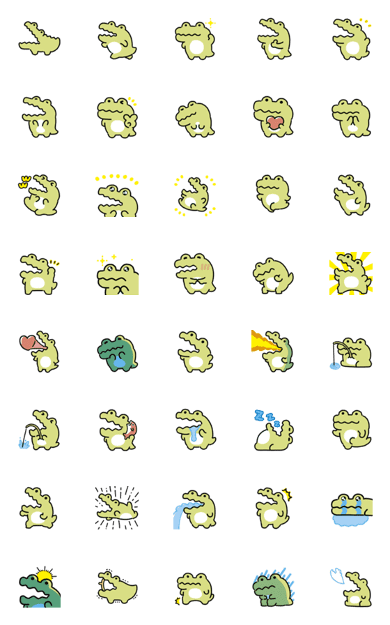 ゆるい鰐のアニメーション絵文字です。爬虫類/ワニ/動く/どうぶつ/動物/手書き/毎日使える/シュール/ユニーク/かわいい/シンプル/ゆるかわ/面白い/日常/ハート