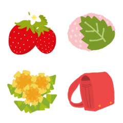 たけのこ、菜の花、つくし、いちご、たんぽぽ、てんとうむし、はち、クローバーなど春満載な絵文字です。スプリング ピンク はる 入学 卒業 花粉