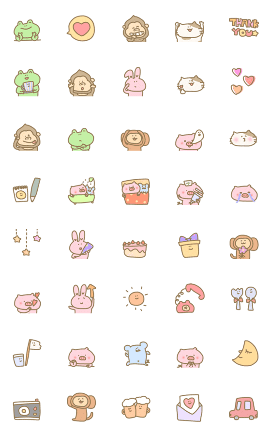 手書/パステル/シンプル/可愛/洒落/カラフル/使える/毎日常/動物/文末/デコ/写真/基本/細/線/祝/茶/春夏秋冬/主婦/ねこ/うさぎ/さる/ぶた/干支/かえる/ゴリラ/誕生日/家族