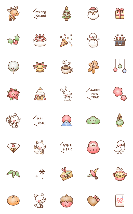 「冬絵文字」特集☻/かわいい/手書き/シンプル/使いやすい/毎日/冬/クリスマス/正月/あけおめ/うさぎ/りす/きつね/しろくま/鳥/