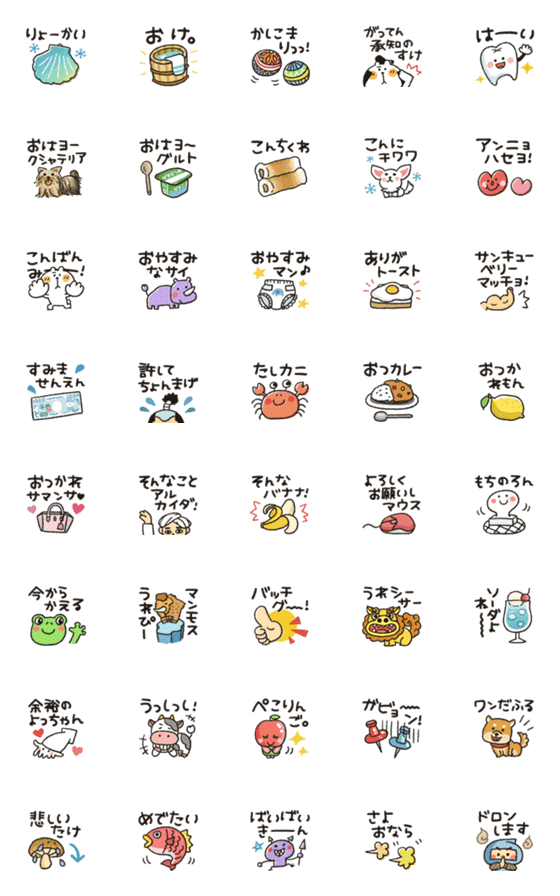 クスっと笑えるダジャレの動かない絵文字です!くまぴもいます!おもしろ/ネタ/ギャグ