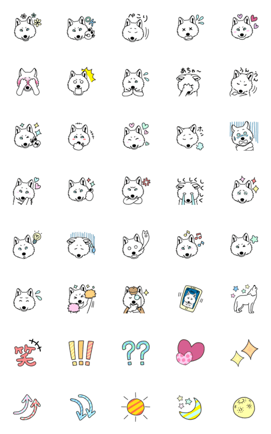 カラフル♡可愛い♡白いオオカミ絵文字