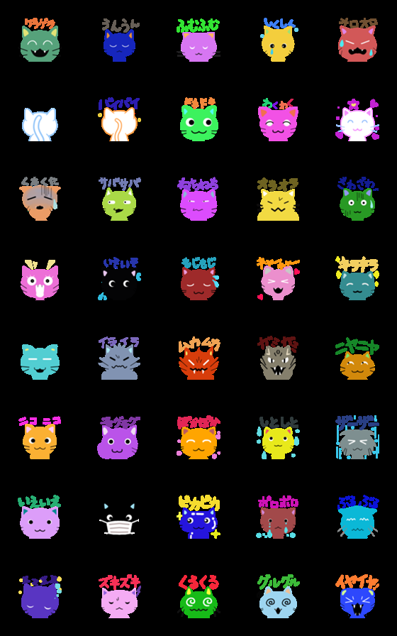 猫色・カラフル猫オノマトペ絵文字