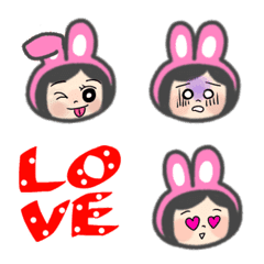 毎日使える、着ぐるみうさぎ女子の顔文字と、メッセージを可愛く彩る絵文字です♪