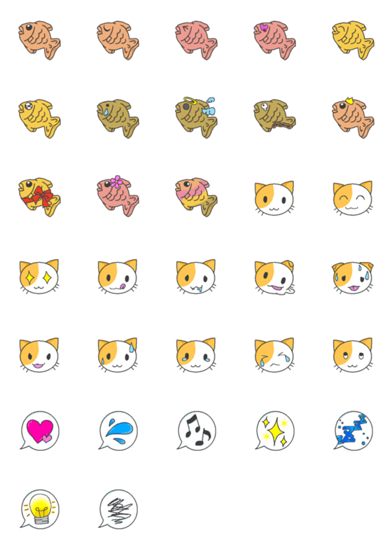 たみねこのたい焼きの日常会話絵文字、吹き出し絵文字付き
