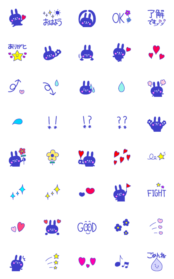 青いうさぎの絵文字です^_^是非使ってね☆彡うさぎ/動物/毎日使える