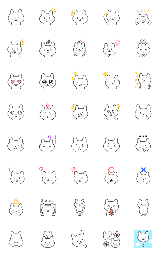 うさぎの絵文字です。ウサギ/日常/表情/喜怒哀楽/かわいい/ゆるかわ/動物/兎/アニマル
