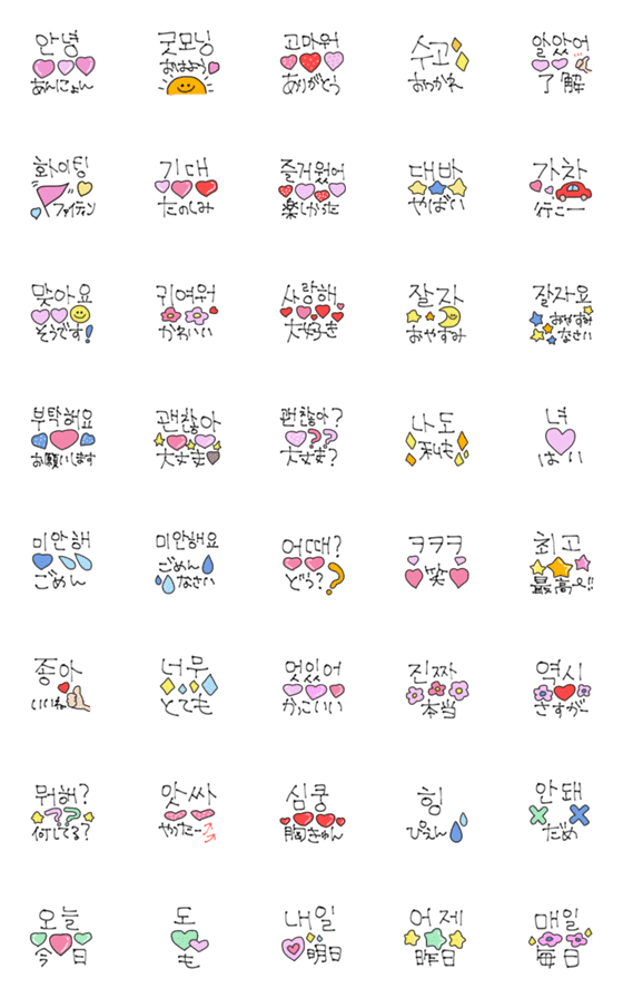 カラフルでポップな韓国語絵文字です♡日本語も大きくわかりやすいです。ハングル/パステル/推し/kpop/おしゃれ/