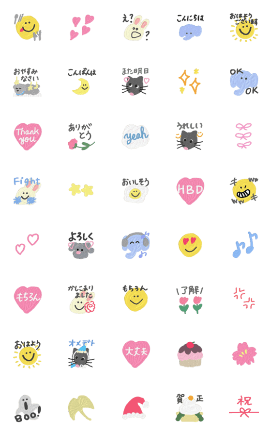 毎日よく使う絵文字を集めました。ハロウィン、クリスマス、お正月にも使えます。