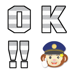 アスファルトに白線を引いた横断歩道のボーダーをイメージしたアルファベットの絵文字セットです^_^ おさるのお巡りさんと英単語のアイコンも入っています^_^