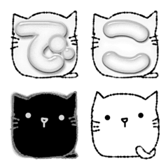 ぷっくりとした白ネコ&黒ネコたちの絵文字・デコ文字(ひらがなカタカナ英数字)です。