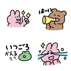 文末にもミニスタンプにも使える絵文字です。秋にも。うさぎ、くま、かえるたちの絵文字です。